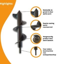 Merkloos Grondboor Voor Planten – 25 CM – Palenboor – Moestuin – Bollenplanter – Zwart