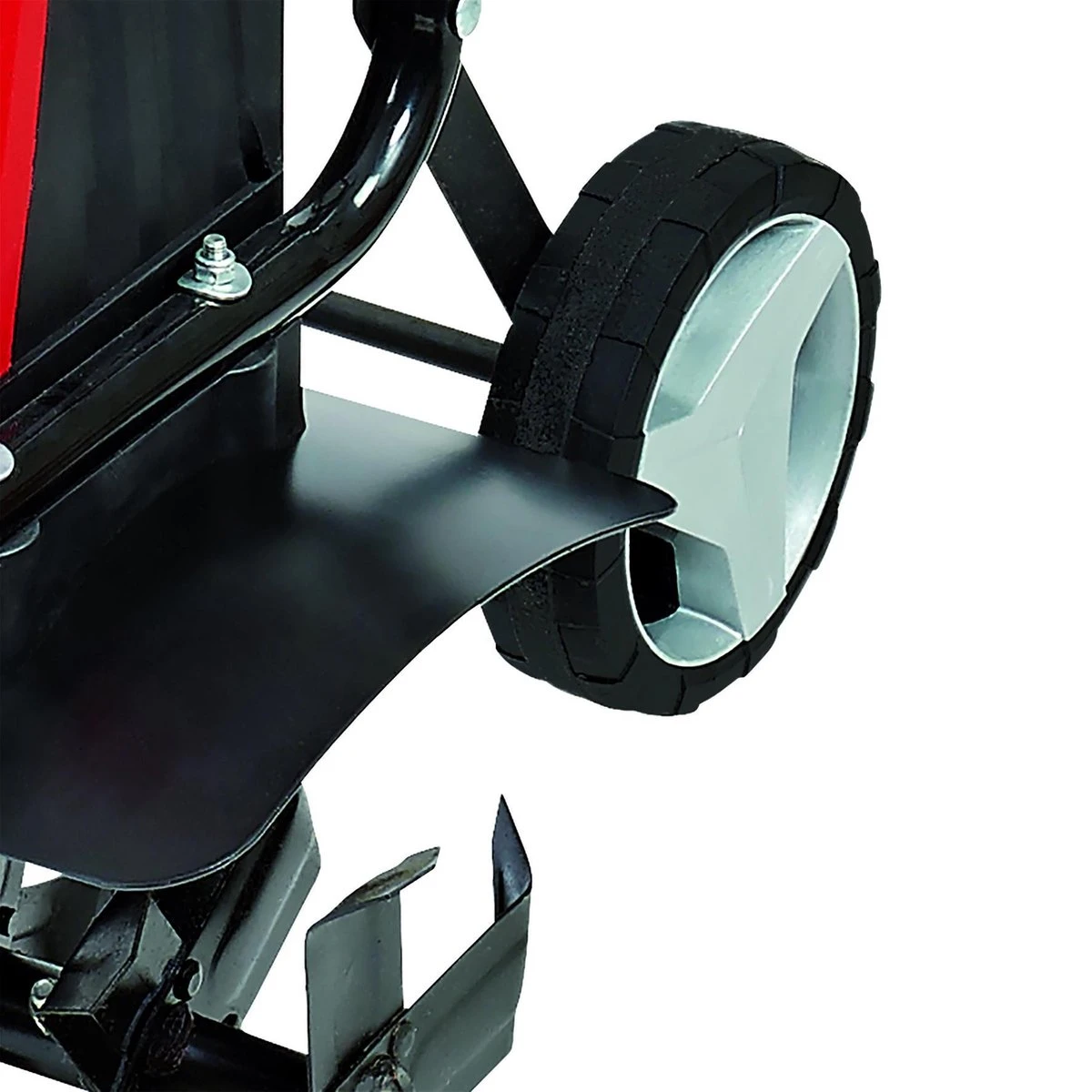 De grote transportwielen onder de machine zijn in hoogte verstelbaar, zodat je de elektrische grondfrees af kunt stellen bij de uit te voeren werkzaamheden en de grond waarmee gewerkt wordt.