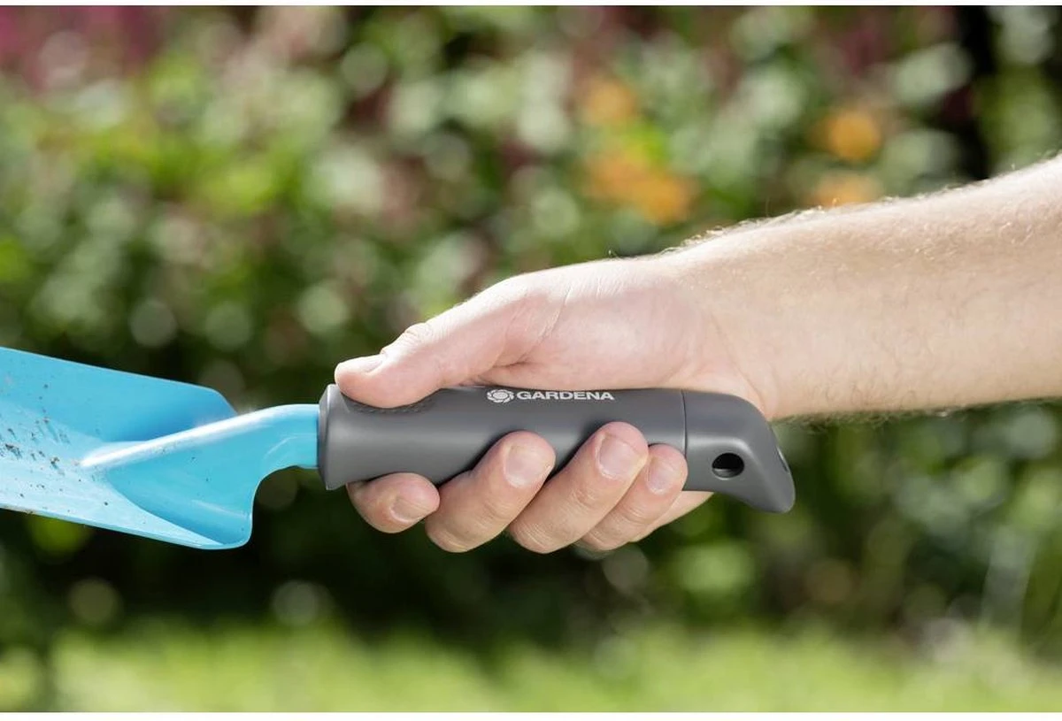 GARDENA 08950-35 TuinschepjeDe Gardena bloemklem is uitermate geschikt voor het planten en planten in bloembakken, bloembakken en beetjes. De ergonomisch gevormde handgreep ligt perfect in de hand en is aan het einde gebogen, zodat u niet kunt wegglijden. De bloemklem heeft een breedte van 8 cm. Hij is gemaakt van hoogwaardig staal. De duroplast coating zorgt voor een lange levensduur, beschermt het schepje tegen corrosie, maakt het ongevoelig voor vuil en is bijzonder duurzaam. De teksten voor dit artikel zijn automatisch vertaald.Ergonomisch gevormde handgreep · Duroplast-coating voor een lange levensduur