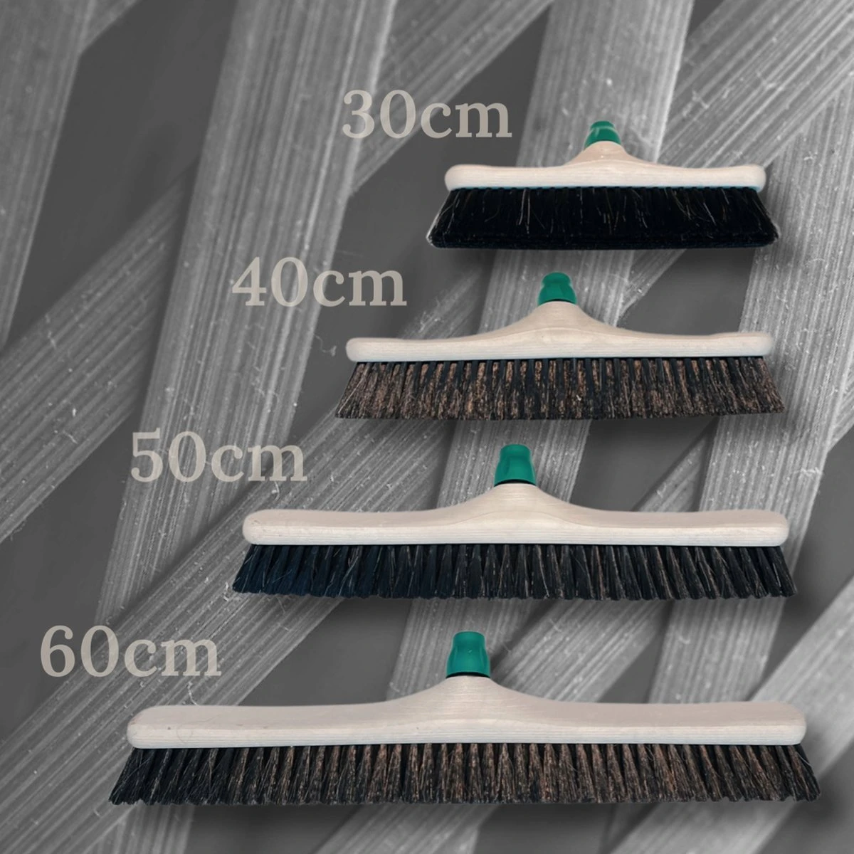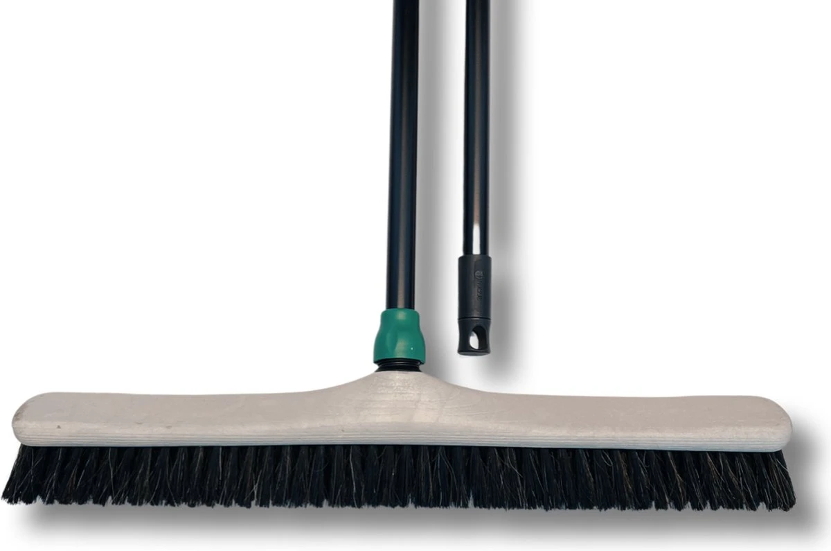 MAUS zachte paardenhaar binnen bezem van 60 centimeter breed met een robuuste steel van 150 centimeter.