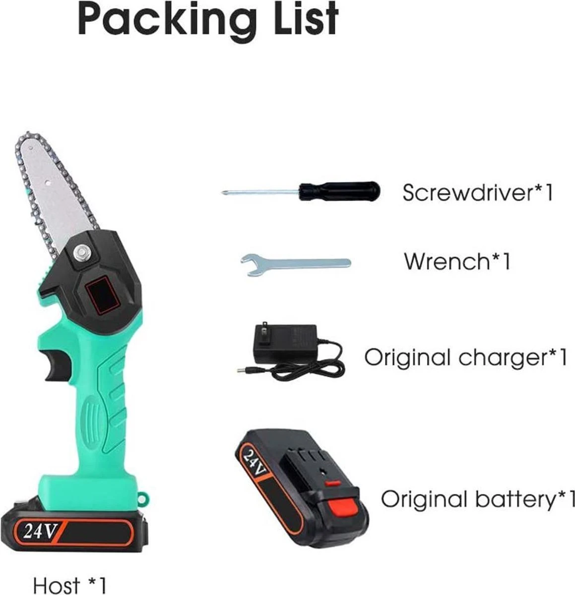 | Verpakkingsinhoud | Mini chinsaw Original battery crewdriver wrench original charger |